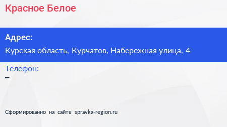 Красное & Белое по адресу Курская область, Курчатов, Набережная улица, 4 в дальнейшем Организация, размещена в следующих категориях: