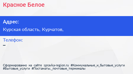 Красное & Белое по адресу Курская область, Курчатов, в дальнейшем Организация, размещена в следующих категориях: