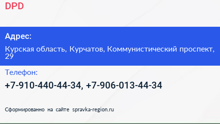 DPD по адресу Курская область, Курчатов, Коммунистический проспект, 29 в дальнейшем Организация, размещена в следующих категориях: