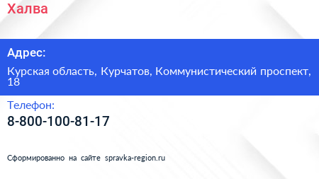 Халва по адресу Курская область, Курчатов, Коммунистический проспект, 18 в дальнейшем Организация, размещена в следующих категориях: