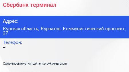 Сбербанк, терминал по адресу Курская область, Курчатов, Коммунистический проспект, 27 в дальнейшем Организация, размещена в следующих категориях: