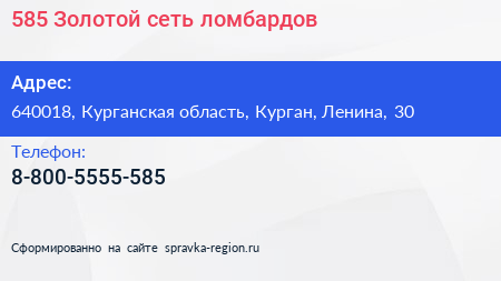 585*Золотой, сеть ломбардов по адресу 640018, Курганская область, Курган, Ленина, 30 в дальнейшем Организация, размещена в следующих категориях:
