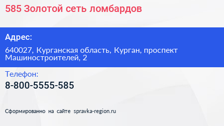 585*Золотой, сеть ломбардов по адресу 640027, Курганская область, Курган, проспект Машиностроителей, 2 в дальнейшем Организация, размещена в следующих категориях: