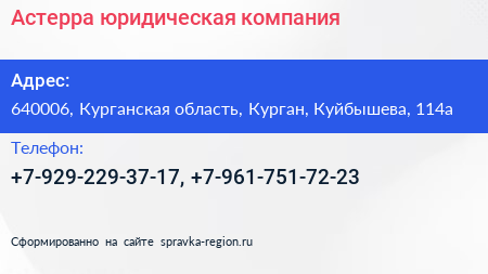 Астерра, юридическая компания по адресу 640006, Курганская область, Курган, Куйбышева, 114а в дальнейшем Организация, размещена в следующих категориях: