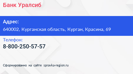 Банк Уралсиб по адресу 640002, Курганская область, Курган, Красина, 69 в дальнейшем Организация, размещена в следующих категориях: