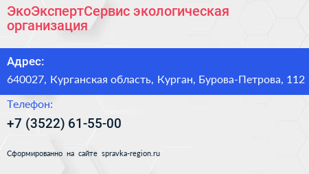 ЭкоЭкспертСервис, экологическая организация по адресу 640027, Курганская область, Курган, Бурова-Петрова, 112 в дальнейшем Организация, размещена в следующих категориях: