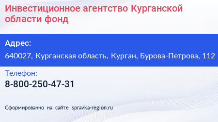Инвестиционное агентство Курганской области, фонд по адресу 640027, Курганская область, Курган, Бурова-Петрова, 112 в дальнейшем Организация, размещена в следующих категориях: