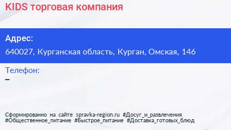 KIDS, торговая компания по адресу 640027, Курганская область, Курган, Омская, 146 в дальнейшем Организация, размещена в следующих категориях: