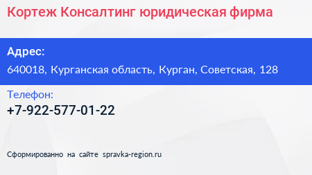 Кортеж-Консалтинг, юридическая фирма по адресу 640018, Курганская область, Курган, Советская, 128 в дальнейшем Организация, размещена в следующих категориях: