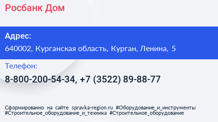 Росбанк Дом по адресу 640002, Курганская область, Курган, Ленина, 5 в дальнейшем Организация, размещена в следующих категориях: