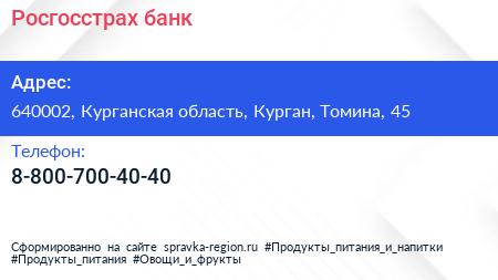 Росгосстрах банк по адресу 640002, Курганская область, Курган, Томина, 45 в дальнейшем Организация, размещена в следующих категориях: