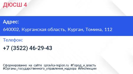 ДЮСШ №4 по адресу 640002, Курганская область, Курган, Томина, 112 в дальнейшем Организация, размещена в следующих категориях: