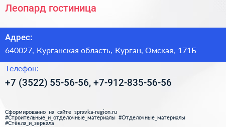 Леопард, гостиница по адресу 640027, Курганская область, Курган, Омская, 171Б в дальнейшем Организация, размещена в следующих категориях: