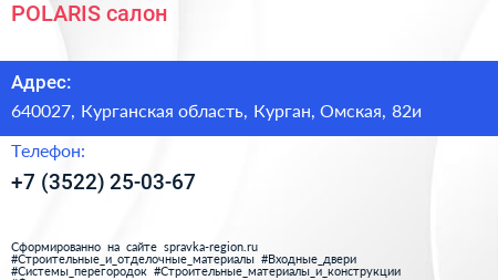 POLARIS, салон по адресу 640027, Курганская область, Курган, Омская, 82и в дальнейшем Организация, размещена в следующих категориях: