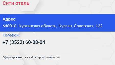 Сити, отель по адресу 640018, Курганская область, Курган, Советская, 122 в дальнейшем Организация, размещена в следующих категориях: