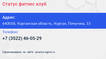 Статус, фитнес-клуб по адресу 640018, Курганская область, Курган, Пичугина, 15 в дальнейшем Организация, размещена в следующих категориях: