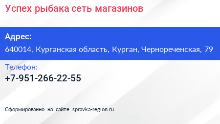 Успех рыбака, сеть магазинов по адресу 640014, Курганская область, Курган, Чернореченская, 79 в дальнейшем Организация, размещена в следующих категориях: