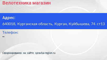 Велотехника, магазин по адресу 640018, Курганская область, Курган, Куйбышева, 74 ст13 в дальнейшем Организация, размещена в следующих категориях: