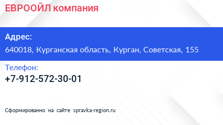 ЕВРООЙЛ, компания по адресу 640018, Курганская область, Курган, Советская, 155 в дальнейшем Организация, размещена в следующих категориях: