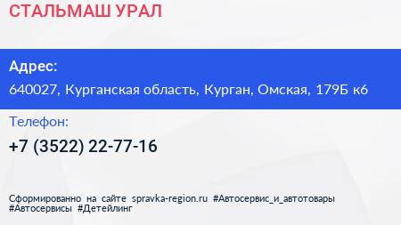 СТАЛЬМАШ-УРАЛ по адресу 640027, Курганская область, Курган, Омская, 179Б к6 в дальнейшем Организация, размещена в следующих категориях: