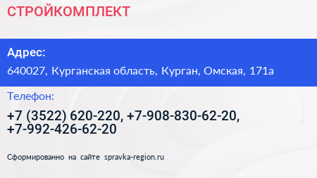 СТРОЙКОМПЛЕКТ по адресу 640027, Курганская область, Курган, Омская, 171а в дальнейшем Организация, размещена в следующих категориях: