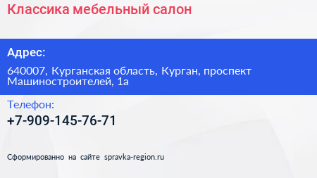 Классика, мебельный салон по адресу 640007, Курганская область, Курган, проспект Машиностроителей, 1а в дальнейшем Организация, размещена в следующих категориях: