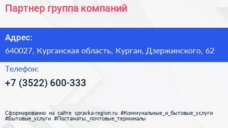 Партнер, группа компаний по адресу 640027, Курганская область, Курган, Дзержинского, 62 в дальнейшем Организация, размещена в следующих категориях: