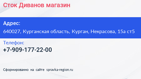 Сток Диванов, магазин по адресу 640027, Курганская область, Курган, Некрасова, 15а ст5 в дальнейшем Организация, размещена в следующих категориях: