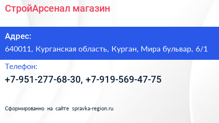 СтройАрсенал, магазин по адресу 640011, Курганская область, Курган, Мира бульвар, 6/1 в дальнейшем Организация, размещена в следующих категориях: