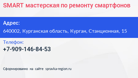 SMART, мастерская по ремонту смартфонов по адресу 640002, Курганская область, Курган, Станционная, 15 в дальнейшем Организация, размещена в следующих категориях:
