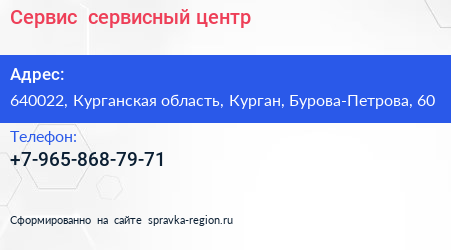 Сервис+, сервисный центр по адресу 640022, Курганская область, Курган, Бурова-Петрова, 60 в дальнейшем Организация, размещена в следующих категориях: