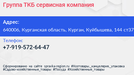 Группа ТКБ, сервисная компания по адресу 640006, Курганская область, Курган, Куйбышева, 144 ст37 в дальнейшем Организация, размещена в следующих категориях: