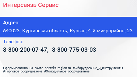 Интерсвязь-Сервис по адресу 640023, Курганская область, Курган, 4-й микрорайон, 23 в дальнейшем Организация, размещена в следующих категориях: