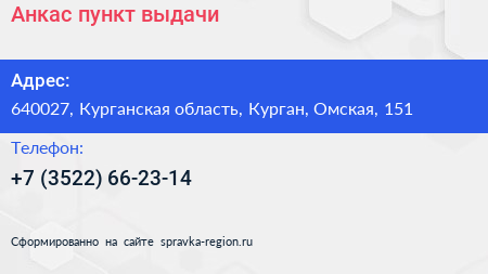 Анкас, пункт выдачи по адресу 640027, Курганская область, Курган, Омская, 151 в дальнейшем Организация, размещена в следующих категориях: