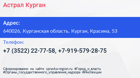 Астрал Курган по адресу 640026, Курганская область, Курган, Красина, 53 в дальнейшем Организация, размещена в следующих категориях: