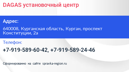 DAGAS, установочный центр по адресу 640008, Курганская область, Курган, проспект Конституции, 2а в дальнейшем Организация, размещена в следующих категориях: