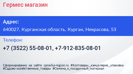 Гермес, магазин по адресу 640027, Курганская область, Курган, Некрасова, 53 в дальнейшем Организация, размещена в следующих категориях:
