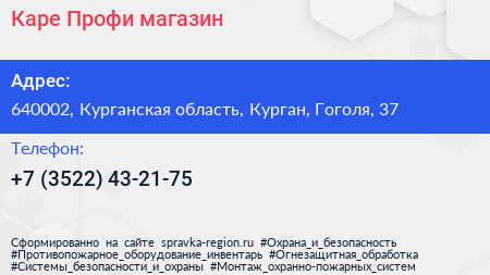 Каре-Профи, магазин по адресу 640002, Курганская область, Курган, Гоголя, 37 в дальнейшем Организация, размещена в следующих категориях: