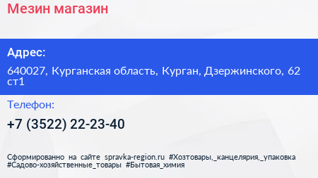 Мезин, магазин по адресу 640027, Курганская область, Курган, Дзержинского, 62 ст1 в дальнейшем Организация, размещена в следующих категориях: