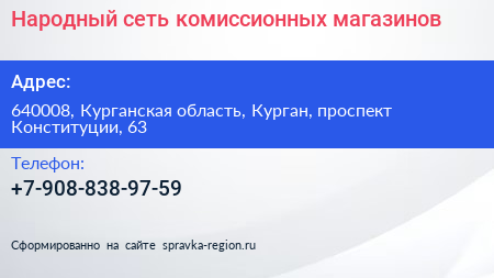 Народный, сеть комиссионных магазинов по адресу 640008, Курганская область, Курган, проспект Конституции, 63 в дальнейшем Организация, размещена в следующих категориях: