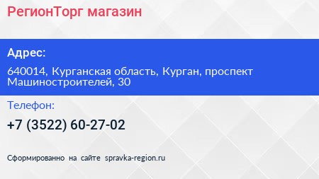 РегионТорг, магазин по адресу 640014, Курганская область, Курган, проспект Машиностроителей, 30 в дальнейшем Организация, размещена в следующих категориях: