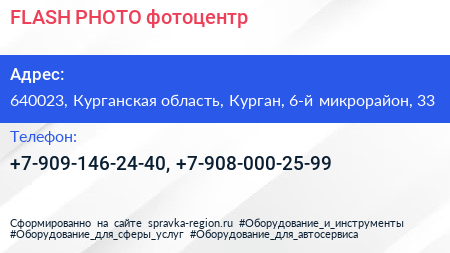 FLASH-PHOTO, фотоцентр по адресу 640023, Курганская область, Курган, 6-й микрорайон, 33 в дальнейшем Организация, размещена в следующих категориях:
