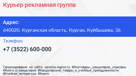 Курьер, рекламная группа по адресу 640020, Курганская область, Курган, Куйбышева, 36 в дальнейшем Организация, размещена в следующих категориях: