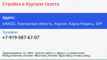 Стройка в Кургане, газета по адресу 640022, Курганская область, Курган, Карла Маркса, 149 в дальнейшем Организация, размещена в следующих категориях: