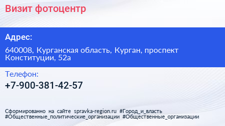 Визит, фотоцентр по адресу 640008, Курганская область, Курган, проспект Конституции, 52а в дальнейшем Организация, размещена в следующих категориях: