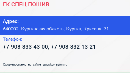 ГК СПЕЦ-ПОШИВ по адресу 640002, Курганская область, Курган, Красина, 71 в дальнейшем Организация, размещена в следующих категориях: