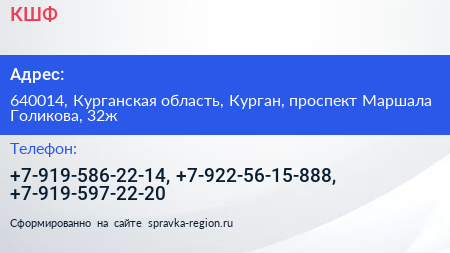 КШФ по адресу 640014, Курганская область, Курган, проспект Маршала Голикова, 32ж в дальнейшем Организация, размещена в следующих категориях: