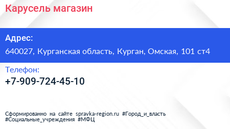 Карусель, магазин по адресу 640027, Курганская область, Курган, Омская, 101 ст4 в дальнейшем Организация, размещена в следующих категориях:
