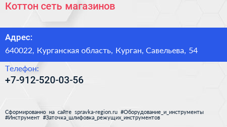 Коттон, сеть магазинов по адресу 640022, Курганская область, Курган, Савельева, 54 в дальнейшем Организация, размещена в следующих категориях: