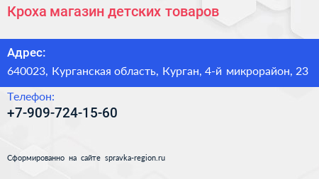 Кроха, магазин детских товаров по адресу 640023, Курганская область, Курган, 4-й микрорайон, 23 в дальнейшем Организация, размещена в следующих категориях: